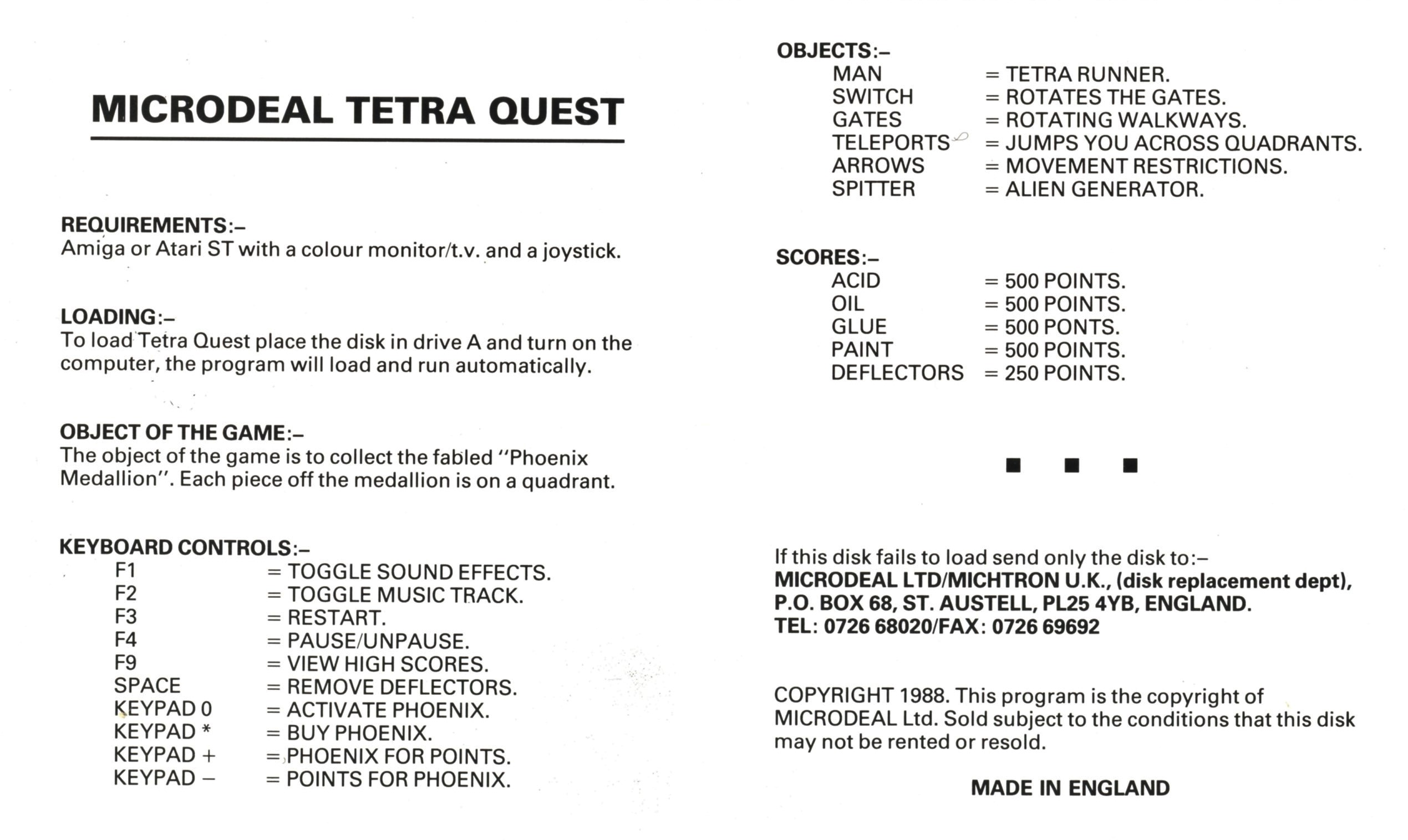 This is a 1988 release of Tetra Quest. It was published by Software Direct. Its license is commercial.