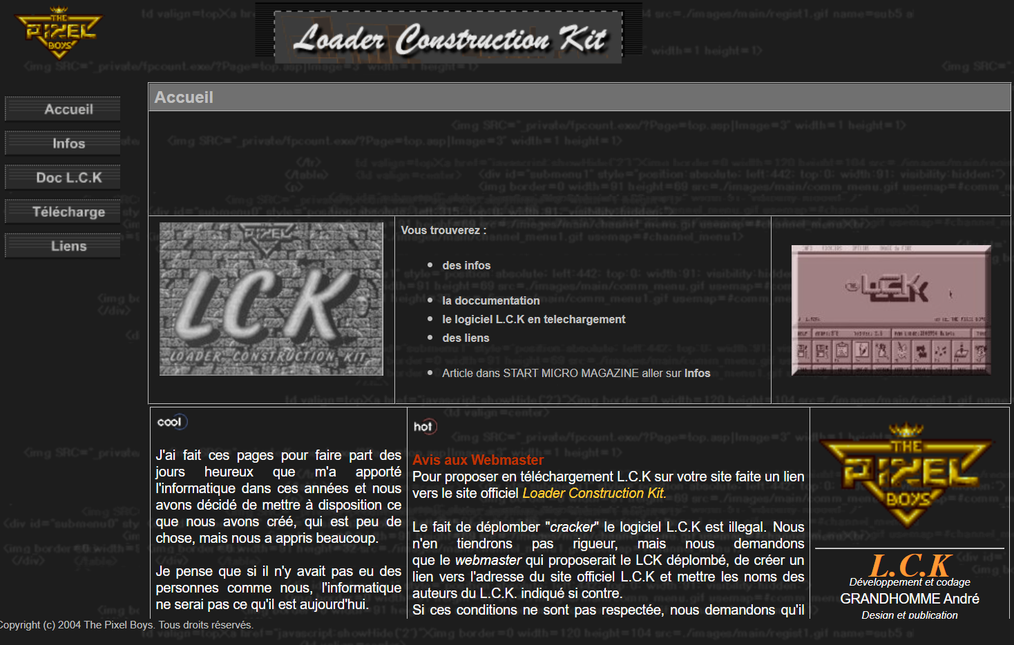 Is a Loader authoring software. (In French: Selection and loading menu.) It allows you to create, without any knowledge of computer programming, an executable file integrating: music, text scrolling, background image, graphic effects, etc. This allows you to personalize your demonstrations, your recreational or professional applications, your advertisements or to give access to the computer world to all novices from 5 to 77 years old...!! In addition, its extreme ease of use will allow you to design your creations in record time, with the only limit being your talent.