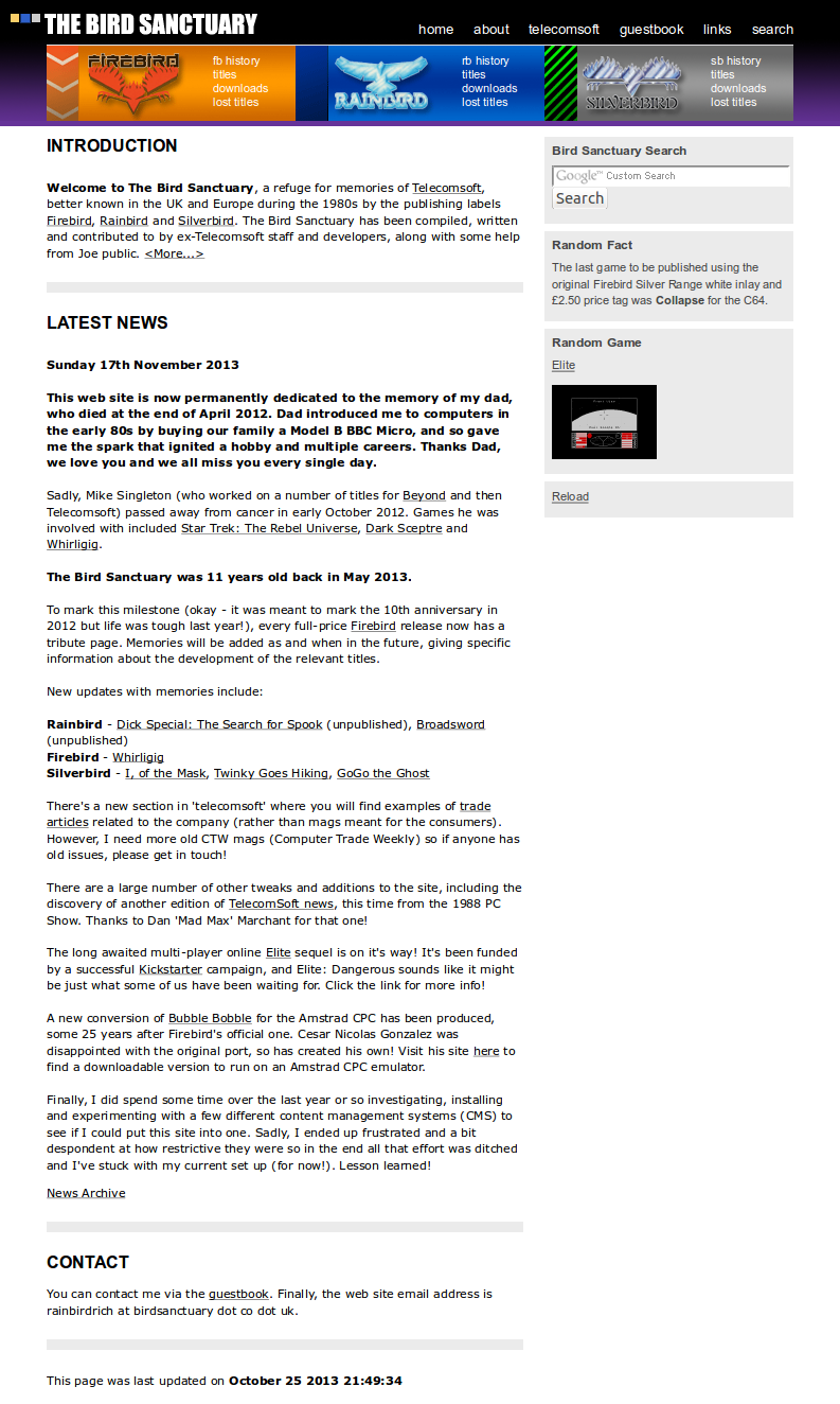 This is a fan website about Telecomsoft, better known as Firebird and Rainbird. Overhere you'll find all the info regarding their classic games. It's a great trip down memory lane.
